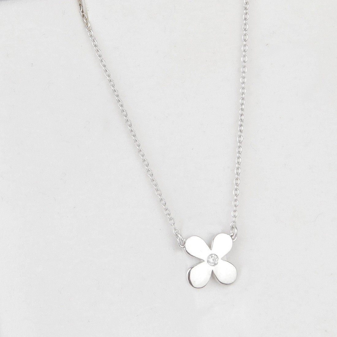 Gargantilla flor de plata 925mm con circonita y cadena con cierre. Longitud 40cm