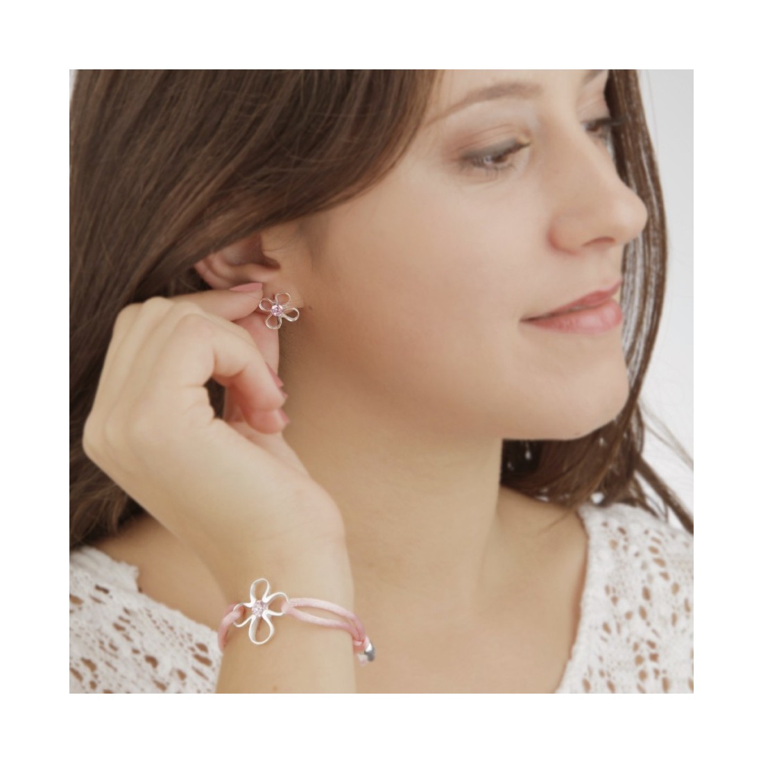 Pendientes Flor de Vida de plata rodiada 925mm y corindón rosa.